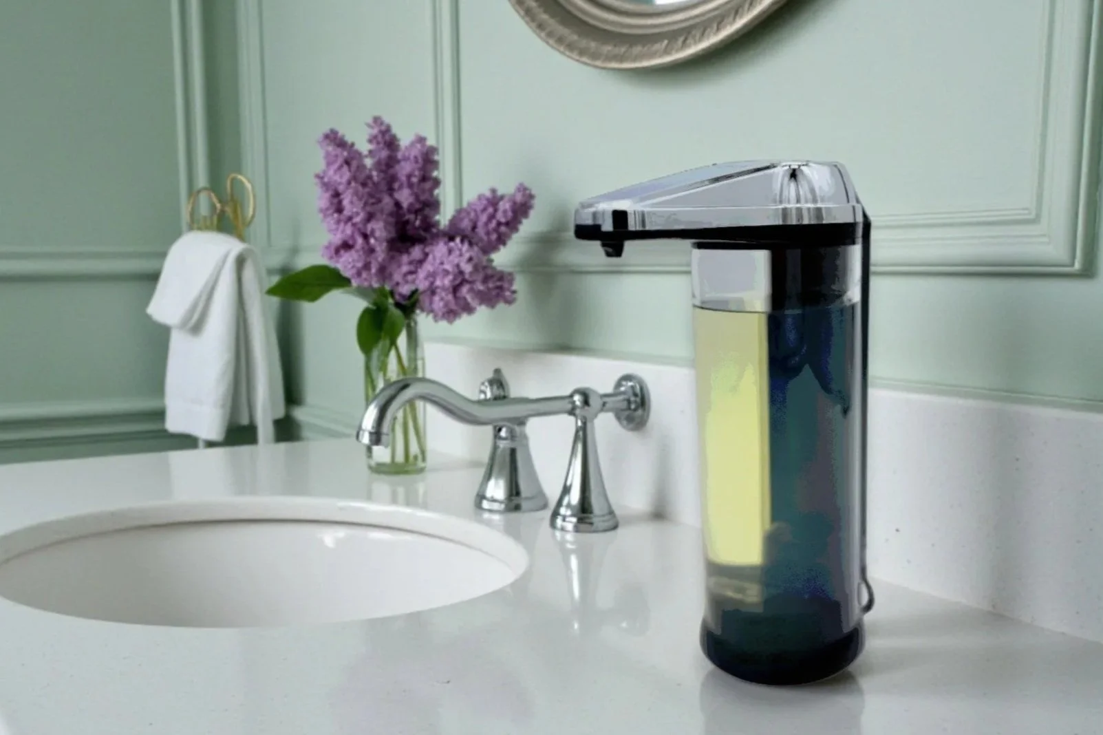 Weeks later, the mom in me decided to buy this dispenser we now lovingly refer to as the “Soap Robot.” Suddenly, hand washing became more fun and less of a chore. It looks like something you might have bought from Sharper Image in the early 2000’s and that’s what I love about it. You also get to feel like you have your own little airport bathroom in the best way possible.